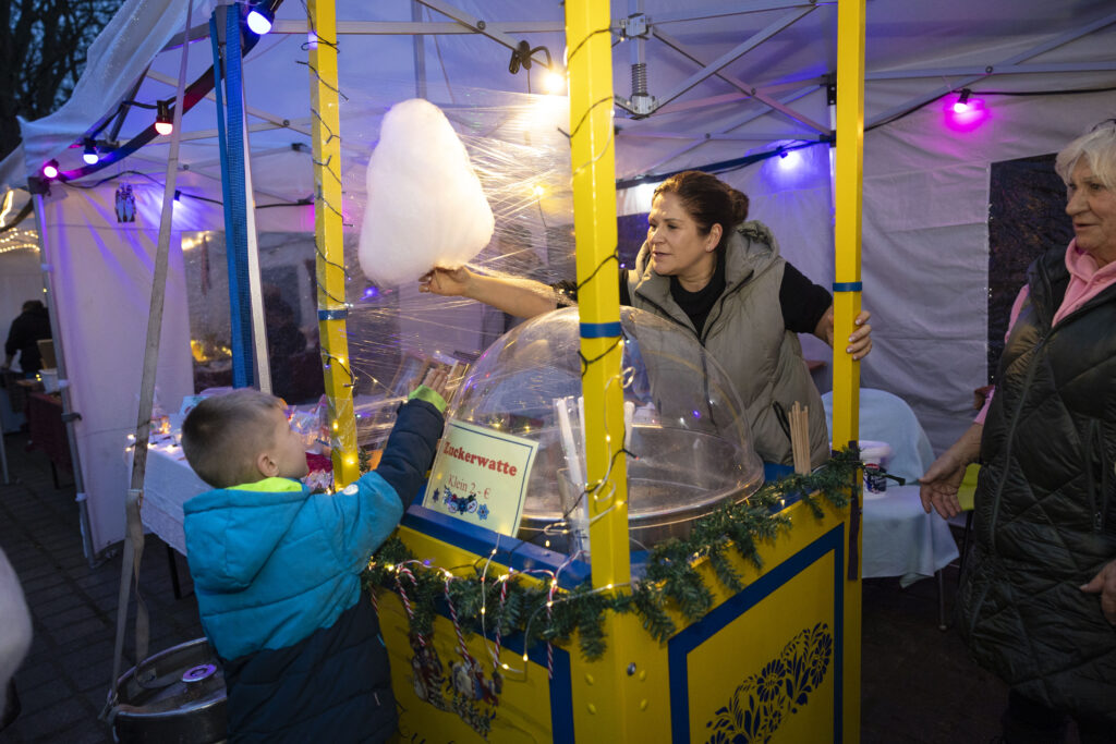 Ein Publikumsmagnet war auch der Stand von Mitglied Waldtraud Troudi. Mit ihrer Zuckerwatte-Maschine war sie erstmals dabei und wurde belagert. Gemeinsam mit ihrer Tochter verwandelte sie rund zehn Kilo Zucker in fluffige Watte-Wölkchen am Stiel. Luis (9) und seine Mama Sandra-Marie Floegel gehörten zu den ersten, die probieren durften. Ihr Urteil fiel eindeutig aus: „Supersüß und superlecker!“
