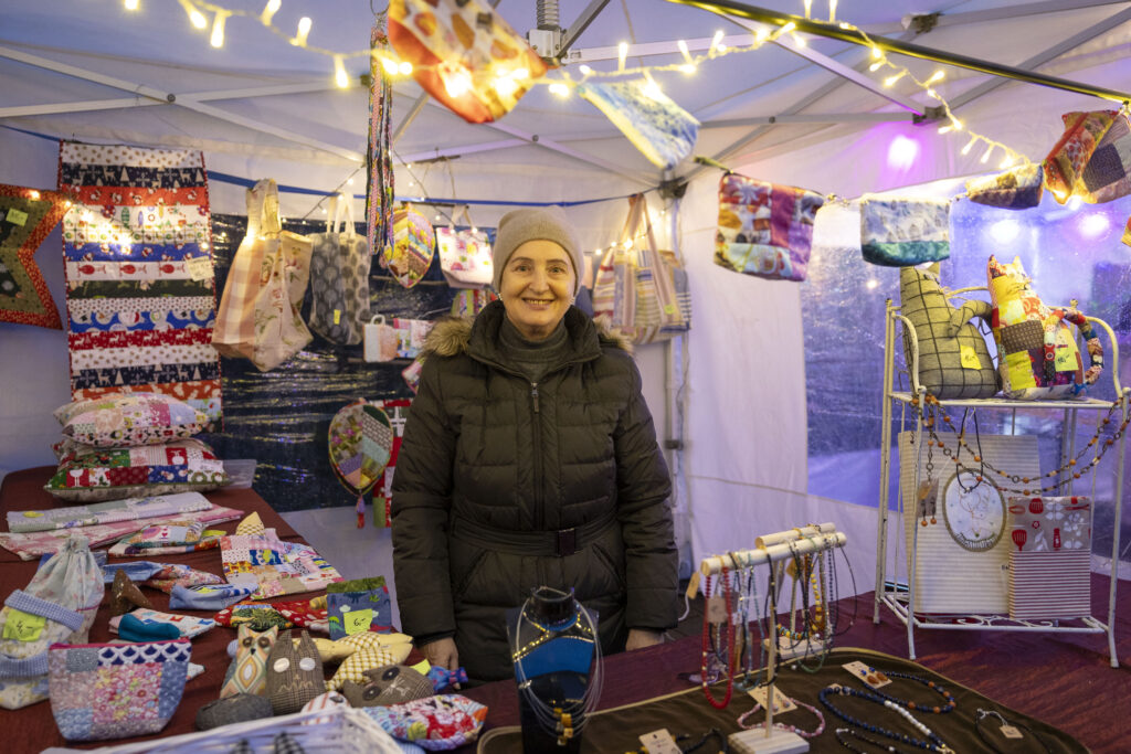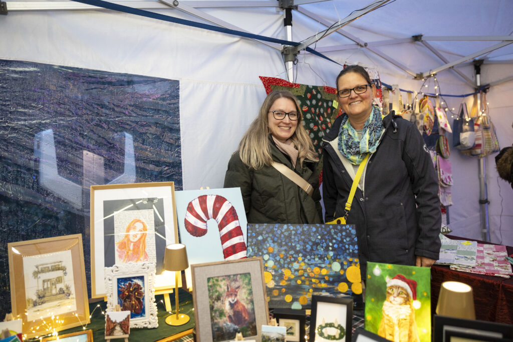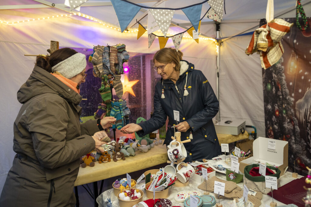 In den Zelten gab es auch diesmal viel zu entdecken. Neben heiß begehrten Klassikern wie selbst gestrickten und gehäkelten Arbeiten von Britta Fricke, Hanna und Ilka Flatz sowie den professionell gebundenen Adventssträußen von Floristin Sonja Asmussen, präsentierten sich mehrere Mitglieder erstmals auf dem Markt. Jennifer Schiek und Timur Alimov luden zu Kostproben ihrer neuen Tee-Marke „Jennifair“ ein. Svenja Mohr und Imke Brodersen zeigten edle Deko aus weißem Resin sowie kunstvolle Gemälde und Zeichnungen. Selbstgestaltete Karten und Diamond-Painting-Bilder brachte Monika Rading mit, Lydia Buxmann neben Patchwork erstmals handgefertigten Schmuck.