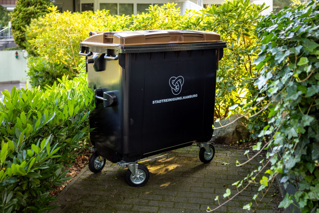 Kennen Sie die neue Laubtonne schon? Die Sammeltonne nur für Laub hat ein Volumen: 770 Liter (Inhalt von ca. acht Laubsäcken). Hamburger Haushalte können die Tonne von September bis Dezember buchen. Foto: Stadtreinigung Hamburg
