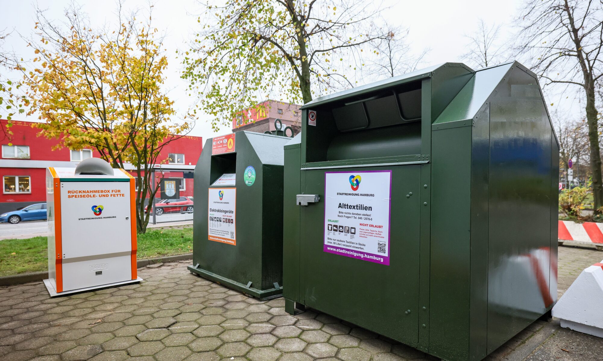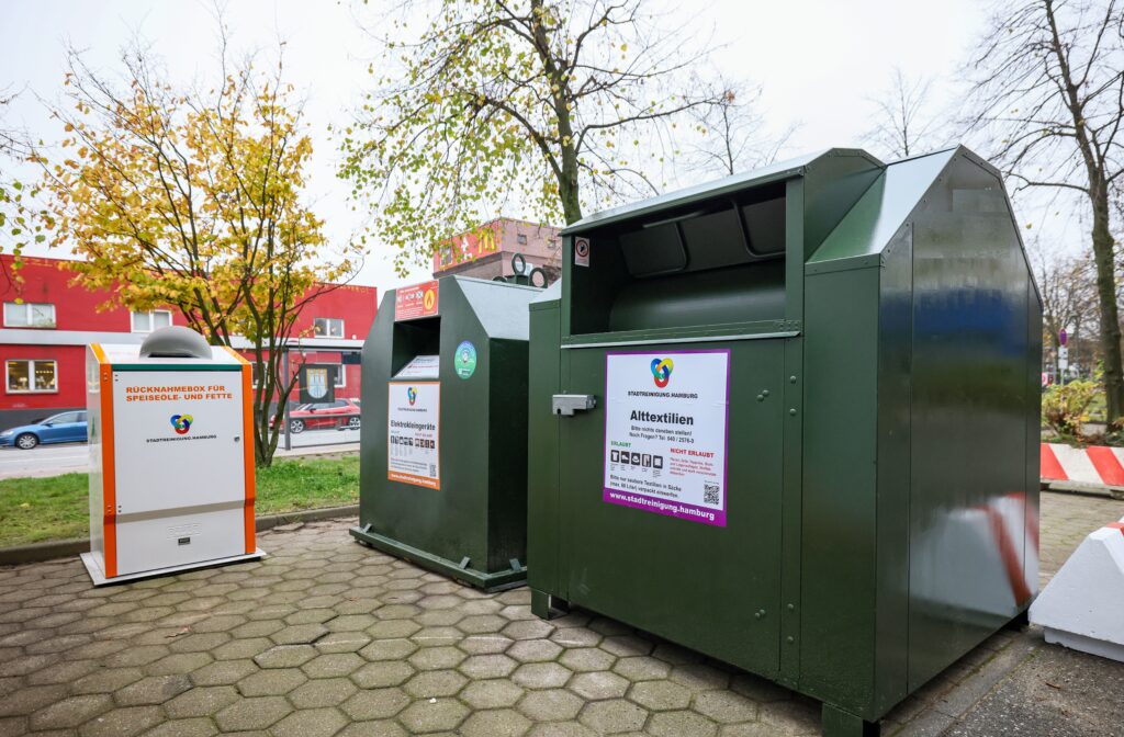 Immer mehr von den Alttextilien-Containern stehen im Hamburger Stadtgebiet. Wo? Das findet man über eine Standortsuche für alle Recycling-Container der Stadtreingung. Foto: Stadtreinigung Hamburg