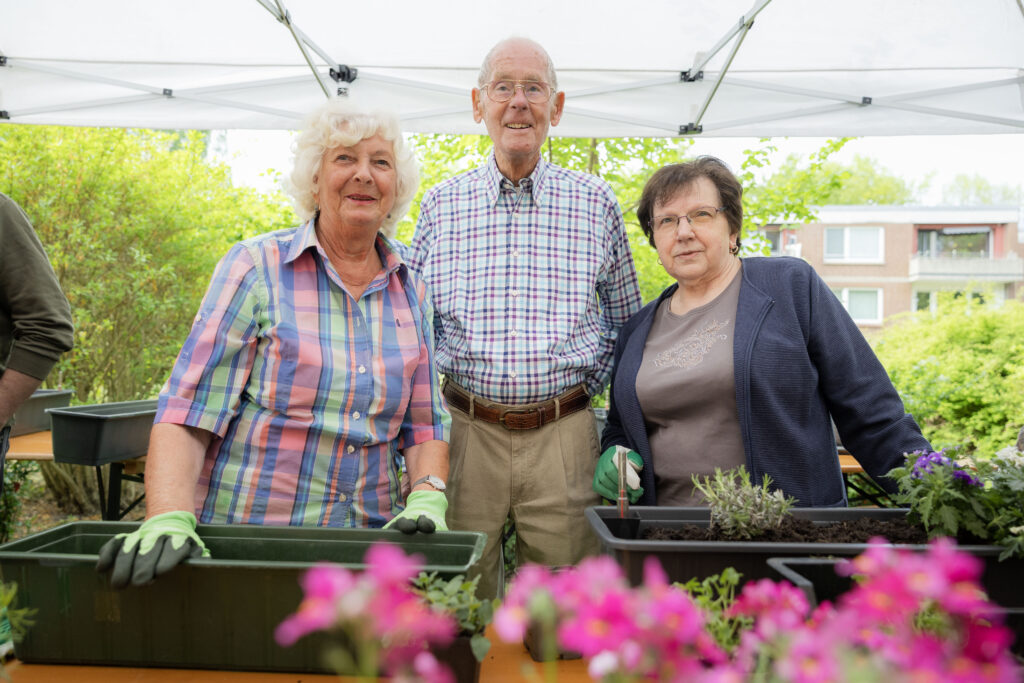 Mehrere Mieterinnen und Mieter der Wohnanlagen Wildacker 5-11 und 39-45 haben zum Abschluss der Modernisierung mit unserer Hilfe Kästen mit bienenfreundlichen Kräutern und Blumen bepflanzt – ein Geschenk der WGW.