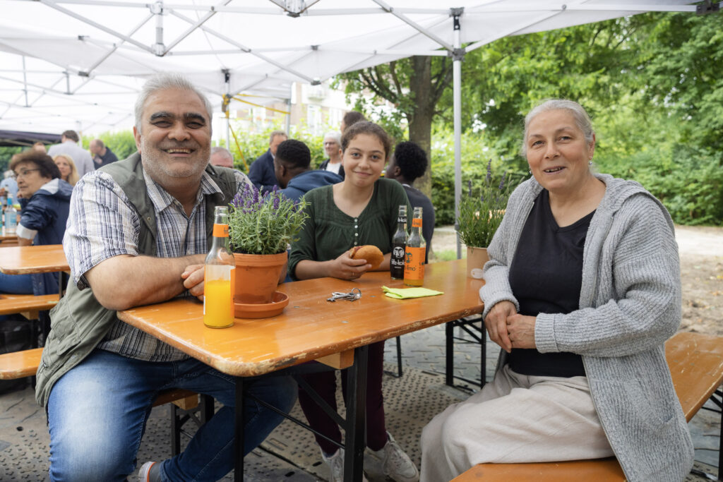 Gülsun Donmaz und Tochter Aylin haben es sich mit ihrem Schwager Mehmet Donmaz an einem der Tische bequem gemacht. Sie betreiben den Kiosk an der Ecke. „Die Umbauphase war nicht immer leicht“, erzählen sie. Besonders der teils versperrte Gehweg machte ihnen zu schaffen. Trotzdem sind sie froh über die Modernisierung. „Im Winter ist es jetzt viel wärmer“, erzählt Aylin erfreut und ihr Onkel ist begeistert über die Rückmeldungen der Kunden. „Alle sagen, dass es jetzt viel schöner aussieht.“