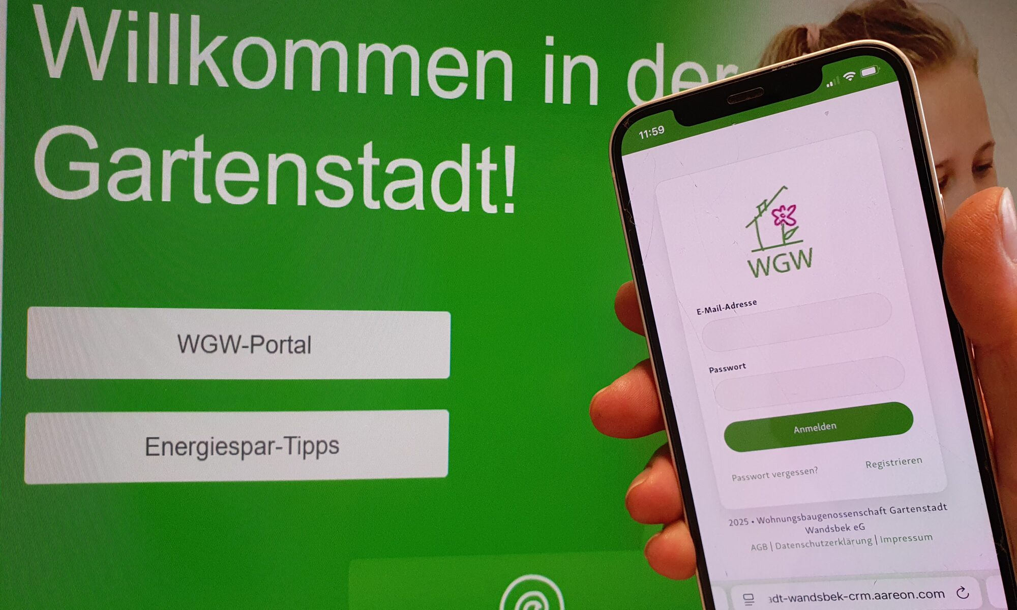 Melden Sie sich am besten noch heute an, falls Sie das bisher nicht gemacht haben: Über unsere Website gartenstadt-wandsbek.de kommen Sie auf der Startseite zum Button WGW-Portal. Dort finden Sie auch die häufigsten Fragen und Antworten unter FAQ. Registrieren können Sie sich mit Ihrem Registrierungscode den Sie von uns mit der Post erhalten haben.