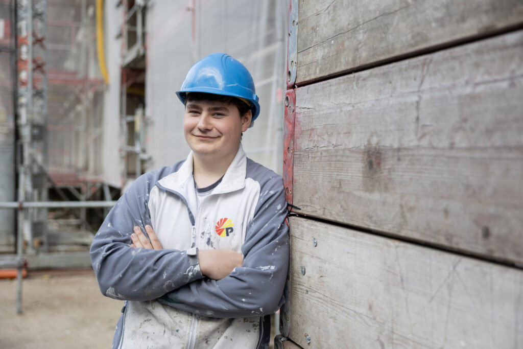 Max Nagel (Foto unten) hatte dazu schon mehrfach Gelegenheit. „Ich habe schon mehrere Seminare von Brillux besucht“, erzählte der angehende Maler und Lackierer im dritten Lehrjahr bei der Malerei Peters in Schleswig-Holstein. Dass sein Betrieb ihn regelmäßig für solche Projekte freistellt, weiß der 18-Jährige sehr zu schätzen. Für die Sonnenuhr wurde er von seiner Ausbilderin vorgeschlagen – und war sofort begeistert: „Fassaden machen wir sonst selten.“