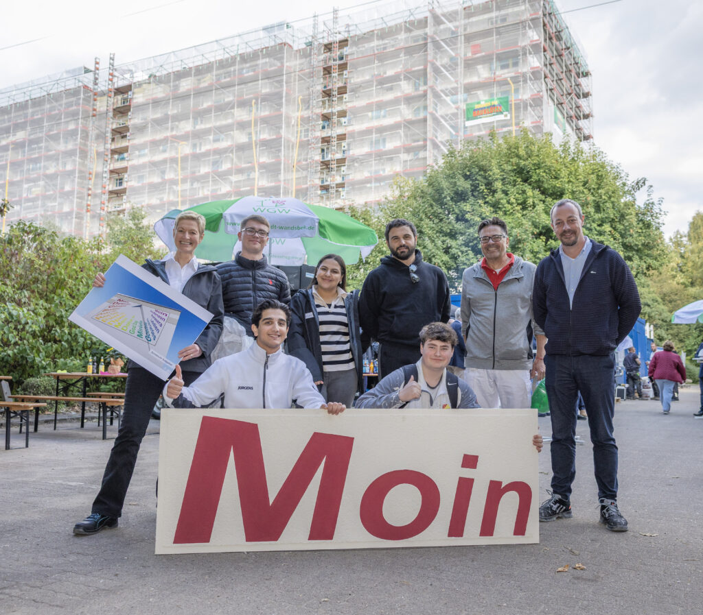 Dazu gehören unter anderem Dominik Rehbock und Freundin Anke. Sie kennen das Thema mit den Temperaturen – aber zum Glück nur aus Erzählungen. „Unsere Familien und Freunde haben uns für verrückt erklärt, dass wir in eine Dachgeschosswohnung ziehen wollen“, verrät er lachend. „Aber die Dämmung ist so gut, da wird es nicht heiß.“ So haben sie sich schon innerhalb weniger Tage nach ihrem Einzug „wunderbar eingelebt“. Viele Nachbarn haben sie zwar noch nicht kennengelernt, „aber dazu haben wir ja heute die Gelegenheit“.